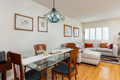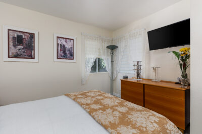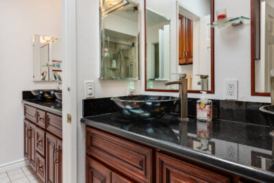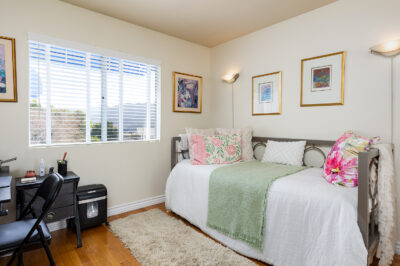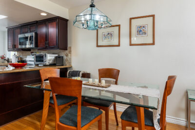 $75,000 cumulative price reduction! Rare does a condo unit of this quality come on the market, sold by its original owner. Discreetly tucked behind commercial frontage is the Crescenta Falls condominium complex. This second floor end unit is at the very back, furthest away from Foothill Blvd. It has access to Fairesta Street so you can take long walks without traffic. The unit has its own front porch with views of trees not buildings, even a lemon tree that drops lemons on your side! There’s a Ring video doorbell for extra security installed last year. An attractive royal blue awning protects the front door and a pull out screen keeps the flies out when you want to leave the door open to catch the evening breeze. A complete remodel was done in 2014 and is immediately noticeable with the unit’s hardwood oak floors and stylish baseboard molding. No expense was spared on the kitchen. This includes custom wood cabinetry with a wine rack, a stainless steel 2019 GE double door refrigerator with lower drawer freezer, a stainless steel 2019 Samsung built-in microwave, stainless steel double sink, Maytag dishwasher, and GE 4-burner, gas stove. The fluorescent bank of lights was replaced by a modern incandescent light fixture. There are double pane, screened windows with wood Venetian blinds for plenty of natural light. The counters are granite, the backsplash is a beige stone-look ceramic tile. The breakfast bar with the same granite top completes the elegant look. The dining area is anchored by an attractive contemporary metal and glass chandelier. The living room area proudly includes an impressive redone gas fireplace with a prominent brick mantel, a lava rock fire base and a sophisticated glass screen. A recessed ceiling light spotlights this masterpiece. Large windows with plantation shutters offer plenty of natural light. On the other side of the unit are two bedrooms and two bathrooms all completely remodeled. The primary ensuite bedroom includes plush shag beige carpet, windows with Hunter Douglas cordless shades and lace curtains, two closets with sliding glass doors, a 3/4 bathroom with a beautiful stand alone shower installed 2022 with frameless sliding glass doors, safety bars and a pull down seat. The floor is ceramic tile. The two ebony vessel sinks with waterfall faucets are set on a Black Mist granite counter with custom wood cabinets underneath. The other bedroom has the best view in the unit, one of the Verdugo Mountains. Also, there’s an ample closet with mirrored sliding doors. Off the hallway is the second 1/2 bathroom, also with two ebony vessel sinks with waterfall faucets set on a Black Mist granite counter with custom wood cabinets underneath. Each bathroom has its own skylight for plenty of light. The hallway has a laundry closet with Maytag Neptune stacked washer/dryer and the hot water heater. This unit includes central air, the condenser/compressor replaced ten years ago, and forced air heat and two side by side carport parking spaces. The complex offers a spacious pool and hot tub with lounge chairs, umbrellas and tables and plenty of guest parking. This quiet oasis is in the sought after La Crescenta school district, close to retail and freeways. There hasn’t been a single unit for sale in over a year. Don’t miss this one.